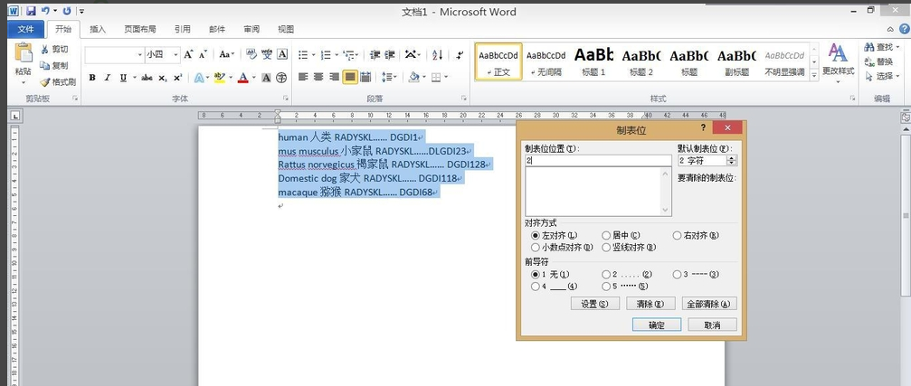 ①在“制表位位置(T)”输入一个名字,在此输入了一个“2”;