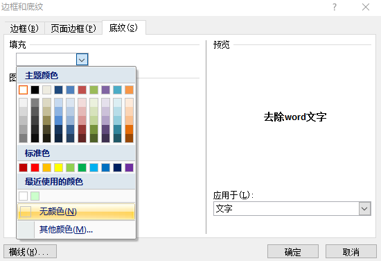 方法二:选重要消除底纹的文字,然后点菜单栏中的格式里的“边框与底纹”,打开“底纹”对话框,把右下角的“应用于”改成“文字”。点“确定”就可以了。
