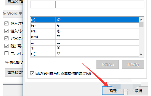 4、在弹出的页面中,鼠标左键单击自动更正选项(A)选项: