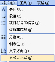 先选中要转换的文字,然后点击 ( 格式)中的(更改大小写),会出来一个对话框,再根据自已的需要变换大小写就可以了。