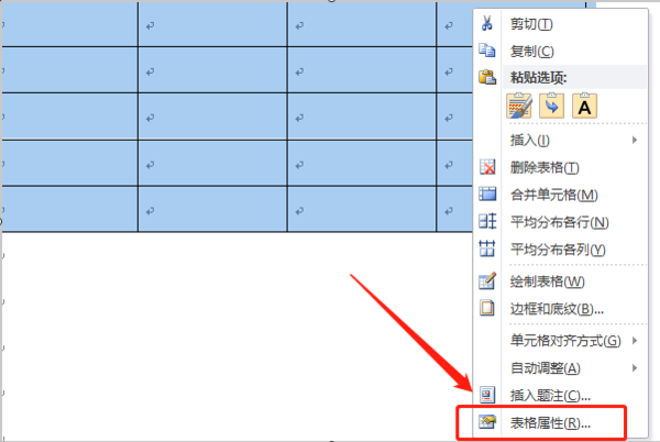 (1)、将鼠标移动到表格左上角,右击并从弹出的菜单中选择“表格属性”项。