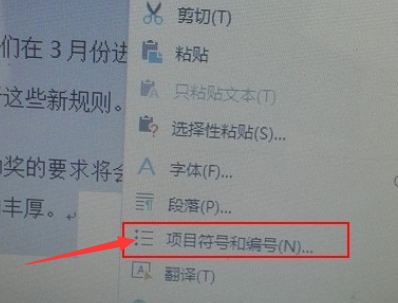 3、完成上一步之后,全选中内容,右键选择项目符号和编号。
