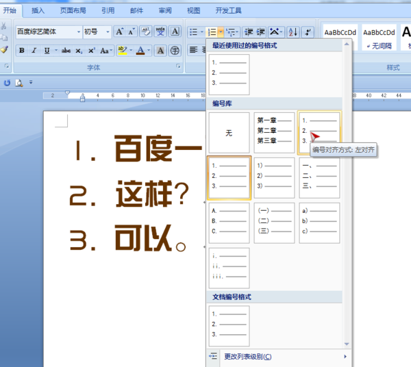 4、完成上一步之后,选择一种自己喜欢的一种编号样式。