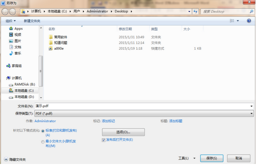3、从保存类型下来菜单中选择PDF格式,点击保存,关闭word;