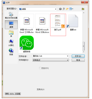 5、打开对话框,定位到刚才保存的位置,找到保存的PDF文件,点击打开即可。
