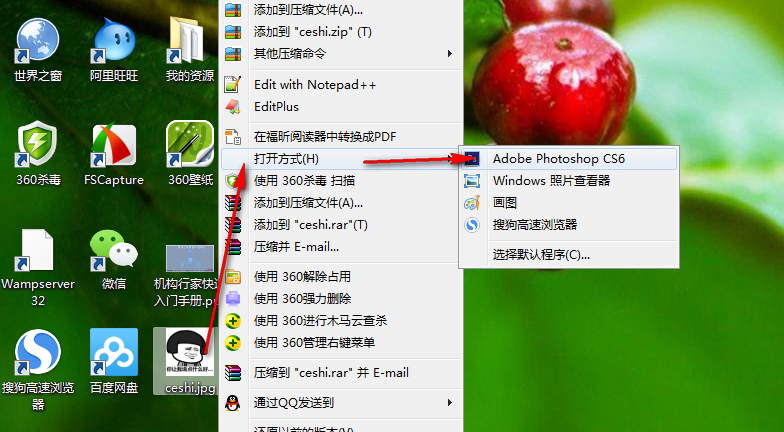 3.在桌面找到这张图片,右击-->选择打开方式-->adobe photoshop cs6打开就可以了。