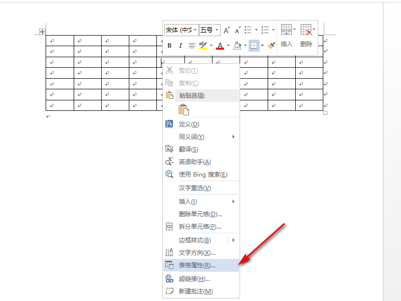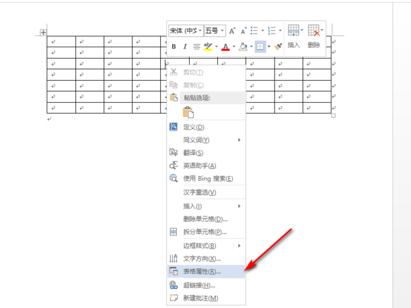 3、将鼠标放在表格上右击,找到表格属性,左击进入表格属性操作页面。