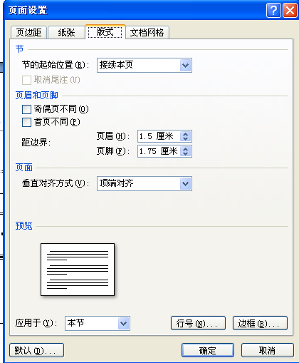 通过上面的方法,可以弹出页面设置对话框,在页面设置对话框共有4个选项卡: