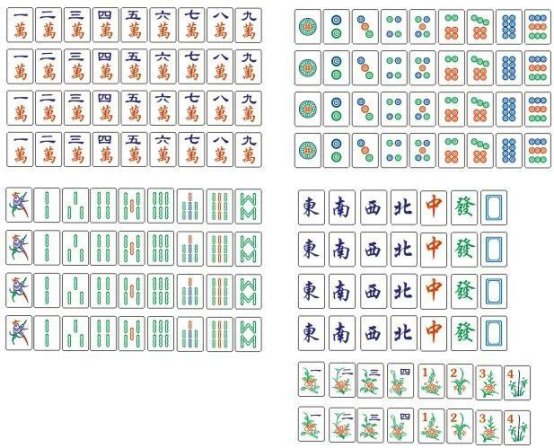 牌数:去掉字牌、花牌,只留万、筒、条,共108张麻将牌。