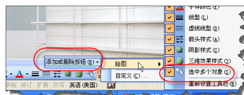 5.在“绘图”工具栏中的“添加或删除按钮”中选择“选中多个对象”。