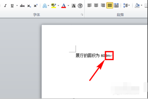 4;点确定后,文档中即打上了平方米的符号,如下图所示。