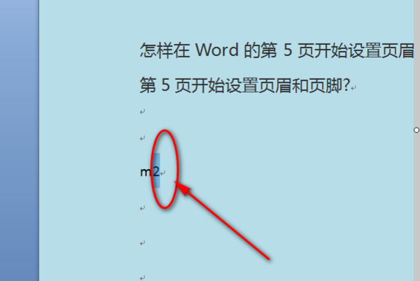 2、在打开的word文档中输入m2两个字符。
