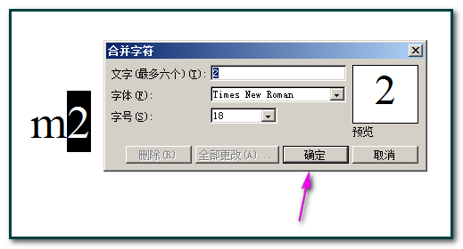 1;同样,先在文档中打上”m2“,再选中”2“,然后,在文档上方的命令栏中顺序点:格式-中文版式-合并字符;