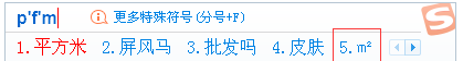 方法2、搜狗拼音输入法输入pfm三个字母选择第五个候选项
