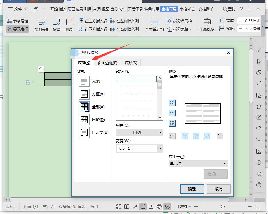 选择“表格和边框”。弹出“表格和边框”工具栏,将“表格和边框”工具栏中