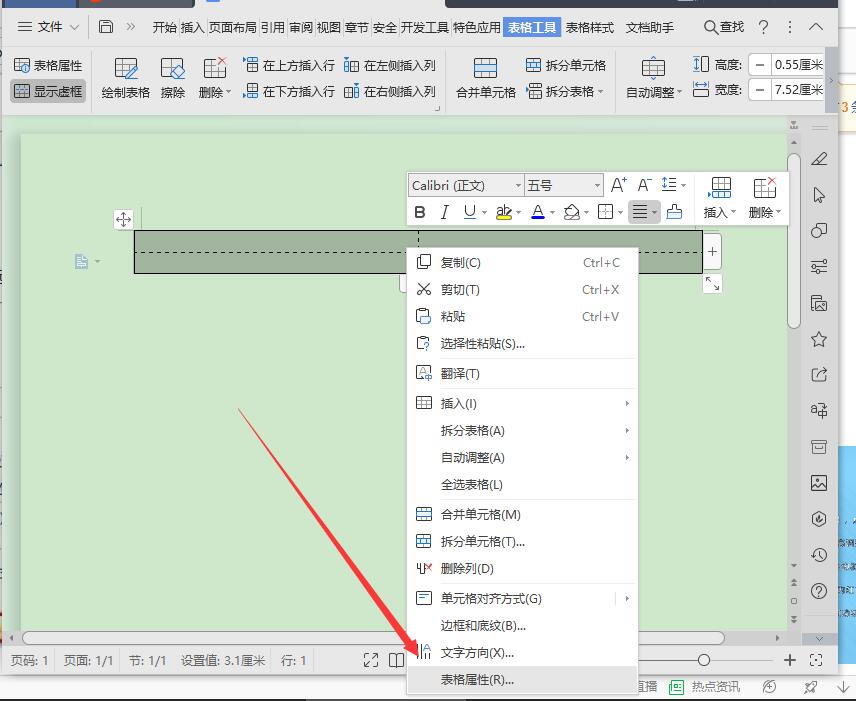 5、接下来进行选中表格,点击鼠标右键,选择“表格属性”。
