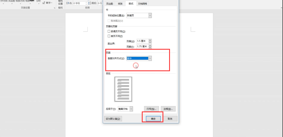 5、点击“页面设置”一栏右下角的按钮,在弹出的对话框中点击“版式”。
