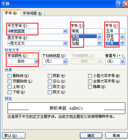 3、弹出字体对话框,在这个对话框中,可以根据需要进行字体、字形、字号、颜色以及其他效果的设置,如图所示。