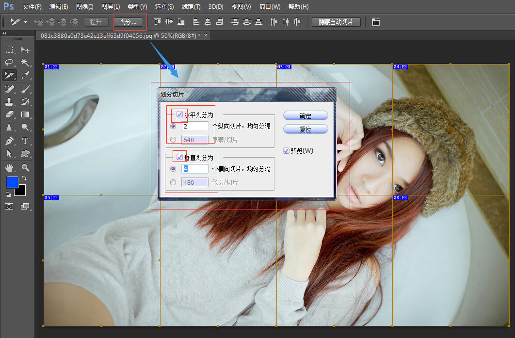 2,点击一下图片,选择划分,输入以下参数