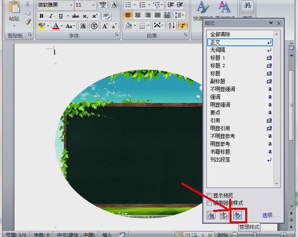 2、接着就会弹出文档的样式模板,点击下方管理样式图标。