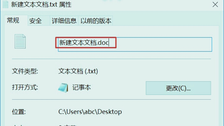 5、在“属性”里面,可以看到后缀是“新建文本文档.txt”。