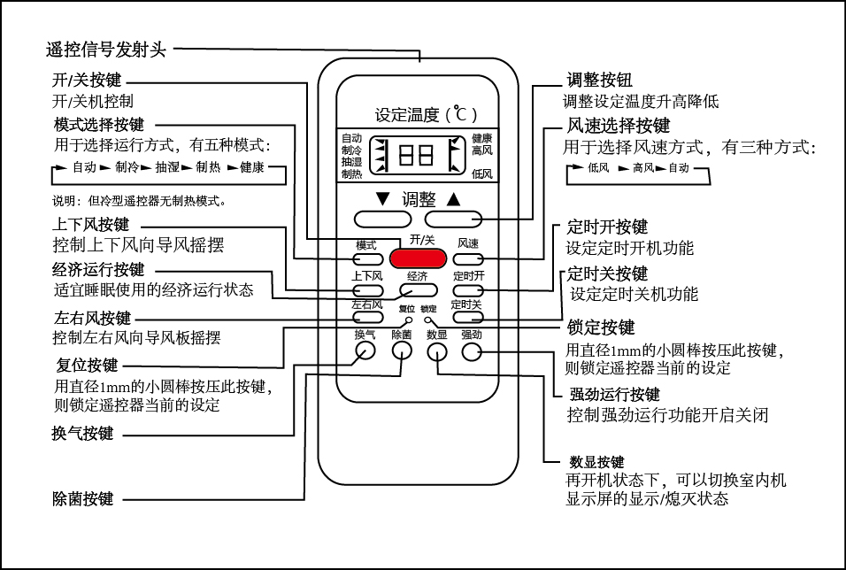 空调遥控按键功能:
