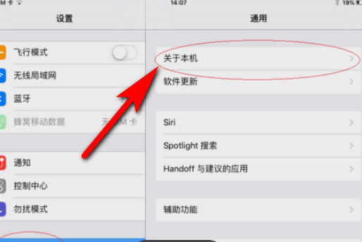 3、在通用设置中找到【关于本机】选项,点击进入。