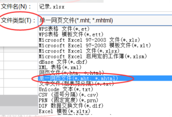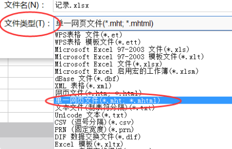 2.在保存类型中选择单个网页文件。