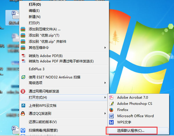 方法2:将默认程序设置为word