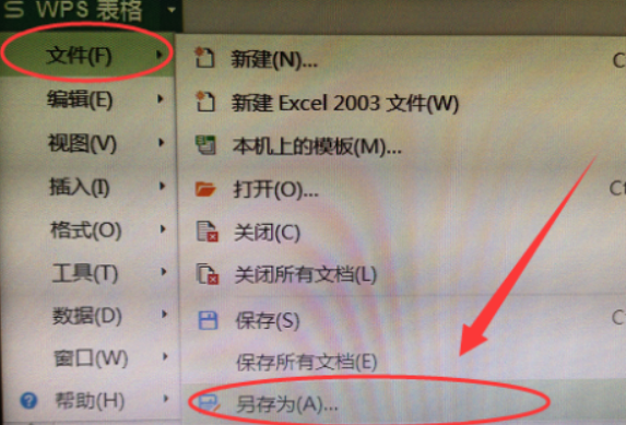 用WPS打开目标excel文件,然后单击左上角的文件 - 另存为。