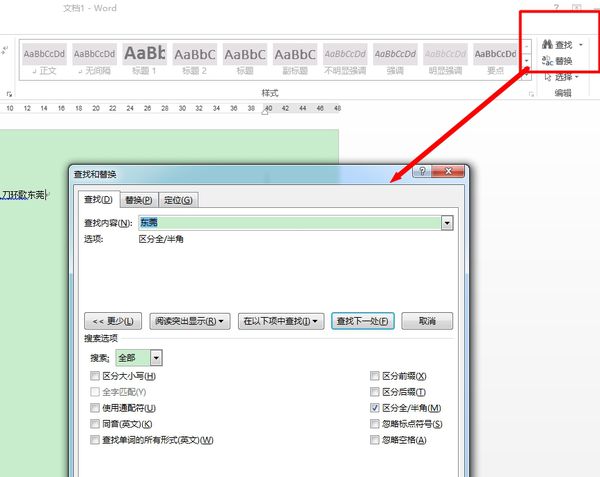 三、然后,在对话框中输入要查找的Word文档重复字。