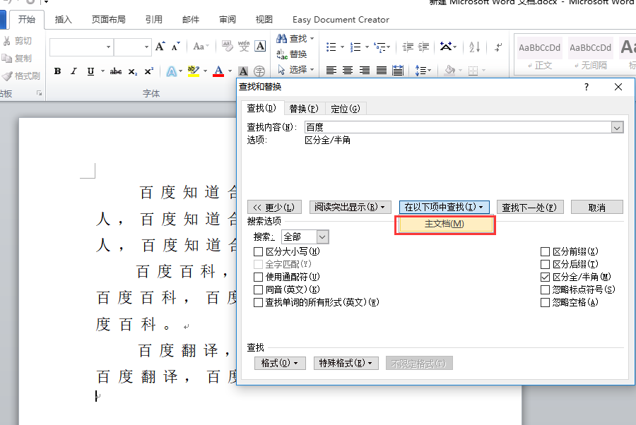 4、选择“主文档”即可。
