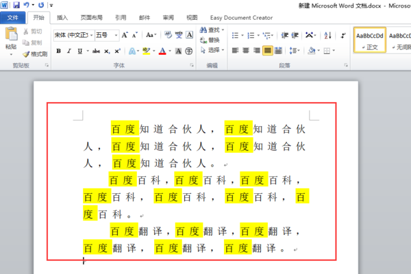 word并没有像excel那样的自动查找并标记重复内容,毕竟Word主要是文字处理软件,一篇文章有很多同样的词组是可以理解的。
