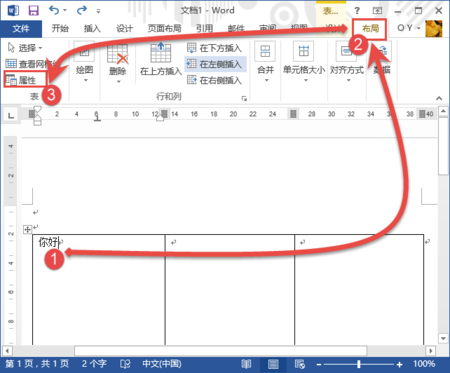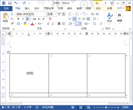 1、在 Word 中新建一个表格,Word 将会显示“表格工具”动态工具栏。