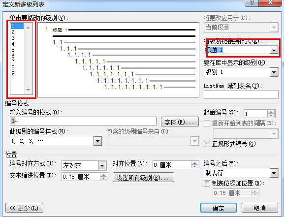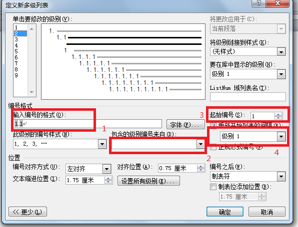 word2010,如何在样式里面设置编号,能够自动编号,比如一级标题是1,2,3,二级标题就是1.1,1.2;2.1,2.2