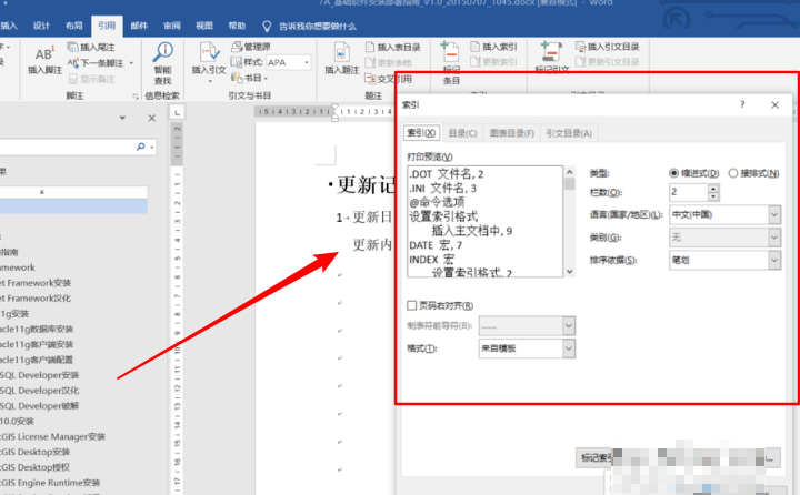 6、设置好之后,点击“确定”,即可在word文档的指定位置插入索引,效果如下图。