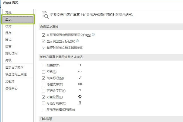 4、在显示选项中,找到“显示段落标记”项,选择或取消,即可进行段落标记的隐藏和显示。