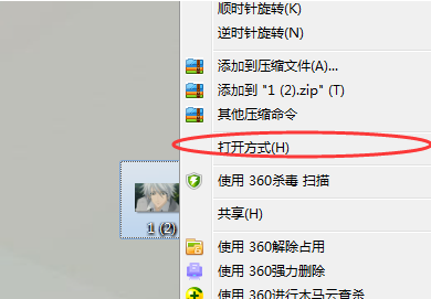 2、然后在该图片上点击鼠标右键,在弹出的选项中选择“打开方式”。