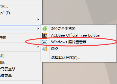 5、如果需要设置图片打开默认为“Windows 照片查看器”的话,可以在点击鼠标右键时选择“选择默认程序”。