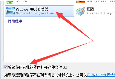 6、选中“Windows 照片查看器”,并勾选下方的“始终使用选择的程序打开这种文件”,点击确定即可。