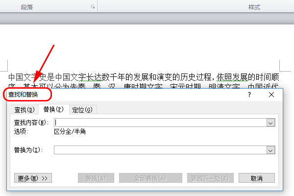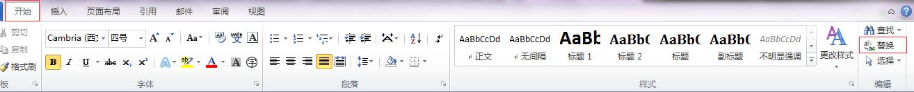 第一步:先依次点击开始->替换(或者直接使用快捷键Ctrl+H)