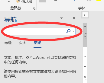 2、即可在页面的左侧弹出“导航”栏,在搜索框中输入需要查找的内容,即可找到查找对象。