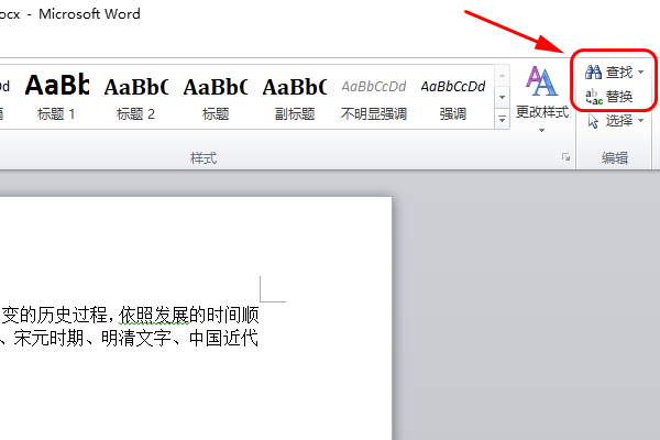 3、另外也可以在开始菜单栏里面的编辑区找到“查找”和“替换”功能。