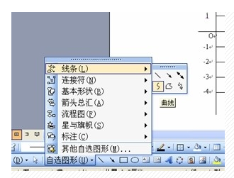 1.U形坐标图:我们可以点击“自选图形”右边的三角选择“线条”里的“曲线”。