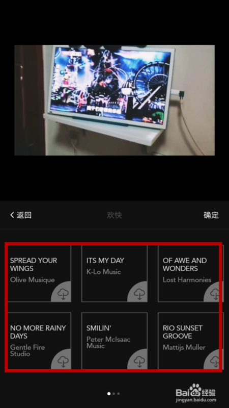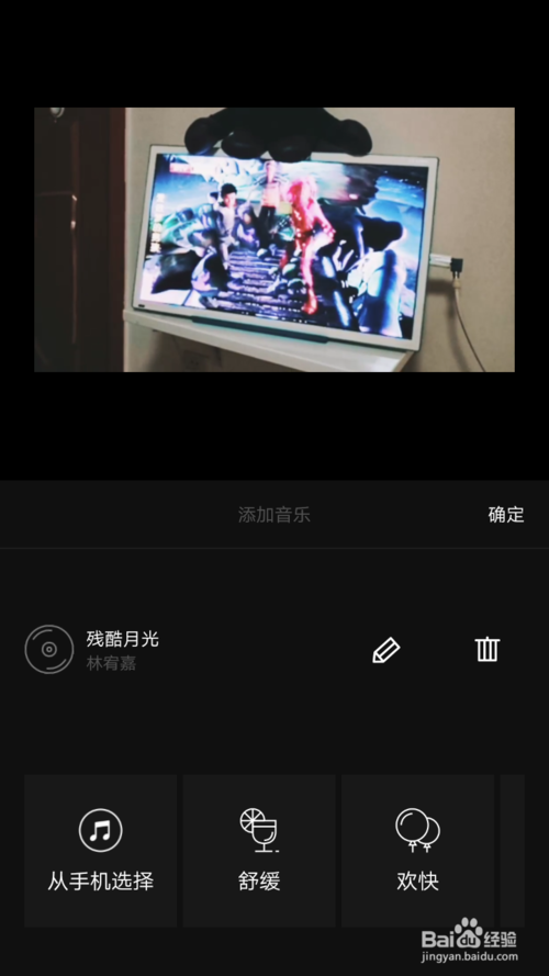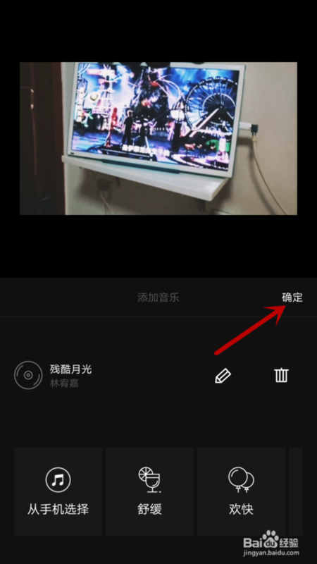 之后我们可以看到音乐的名称,傍边的功能可以编辑音乐或删除音乐重新添加,如果添加的音乐没有问题的话,我们点击如图所示的“确定”,即可将音乐天添加到vue视频中,vue添加音乐成功。