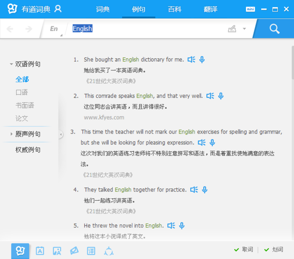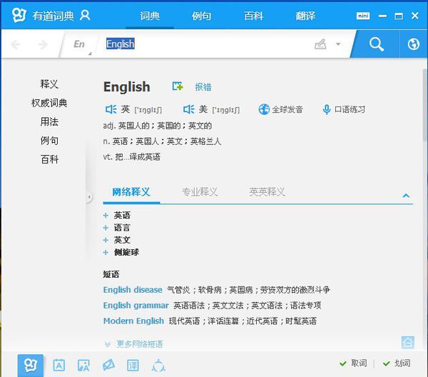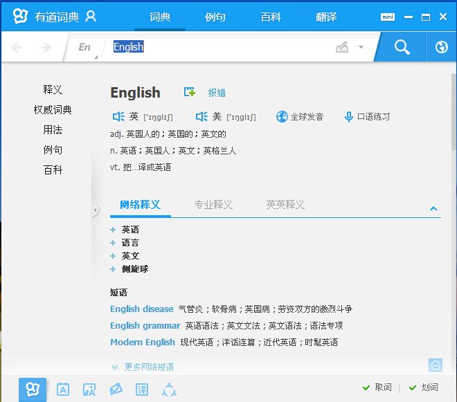 网易有道主要是在线词典,最新版也只有《21世纪大英汉词典》和《新汉英大辞典》两部离线词典,没有网络的时候就没什么意义了;联网时可以翻译句子