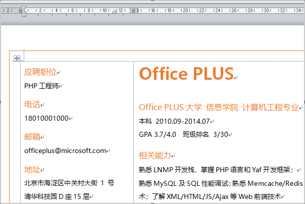 可以在word中参照样式制作一份类似的简历模板可即可;