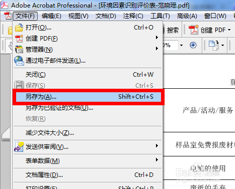把PDF文档打开后可以看到文档做左上角的菜单”文件“