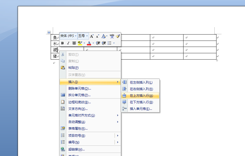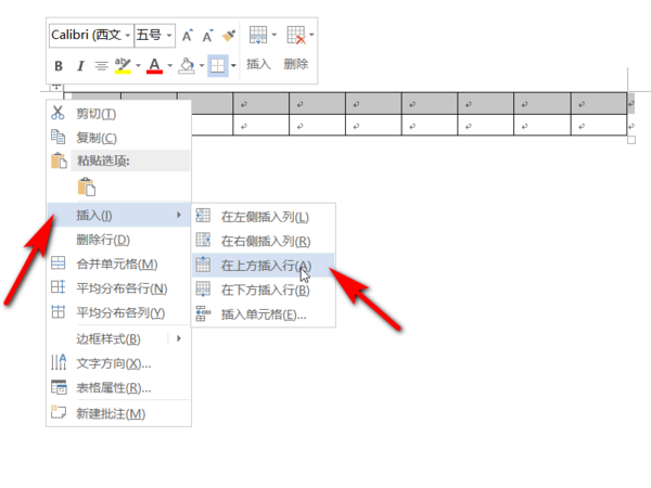 5、这样我们就可以看到,在Word表格中的第一行上方已经插入了新的空白行。