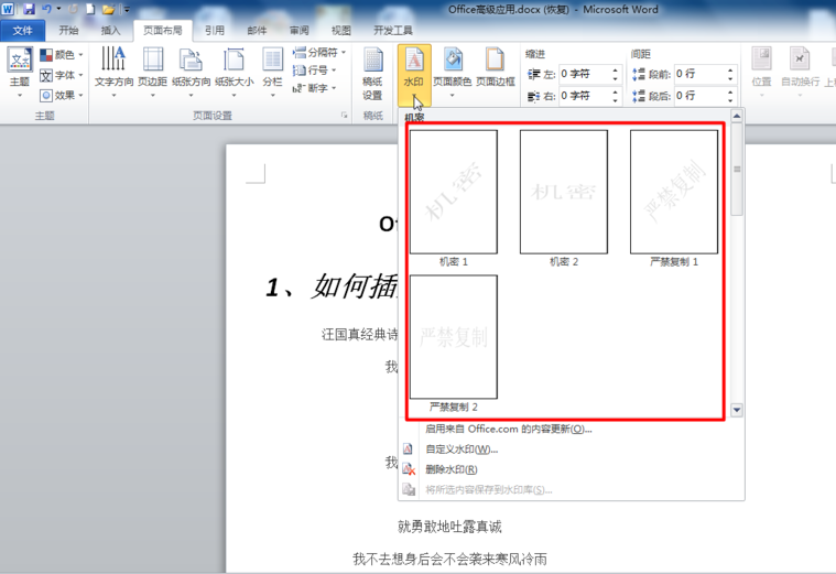 在Word里怎么设置图片为水印?